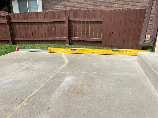 This back patio slab sunk causing large cracks to form throughout the concrete slab. The slab became unlevel making it difficult for patio furniture to sit flat. Our crew lifted the slab back to its original position using PolyLevel Foam. The foam was injected beneath the slab using a pea-sized hole. As the foam expands, the soil beneath is compacted, then lifts the concrete. This process ensures a stable lift. The large cracks were sealed with NexusPro Sealant to prevent water and debris from entering through the cracks. Sealing joints and cracks help prevent future soil erosion.